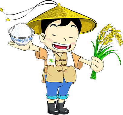 卡通吉祥物取意可愛小孩子他憨厚的笑容,淳樸的衣著向人們傳遞親切、實誠、健康與富足的情感。同時,他也是新時期快樂的小農(nóng)民。他一手擎起稻穗,一手獻出米飯,反映出企業(yè)一面依托種植戶,一面服務(wù)消費者的紐帶定位。更反映出企業(yè)“讓耕者富有,送食者健康”的精神文化。