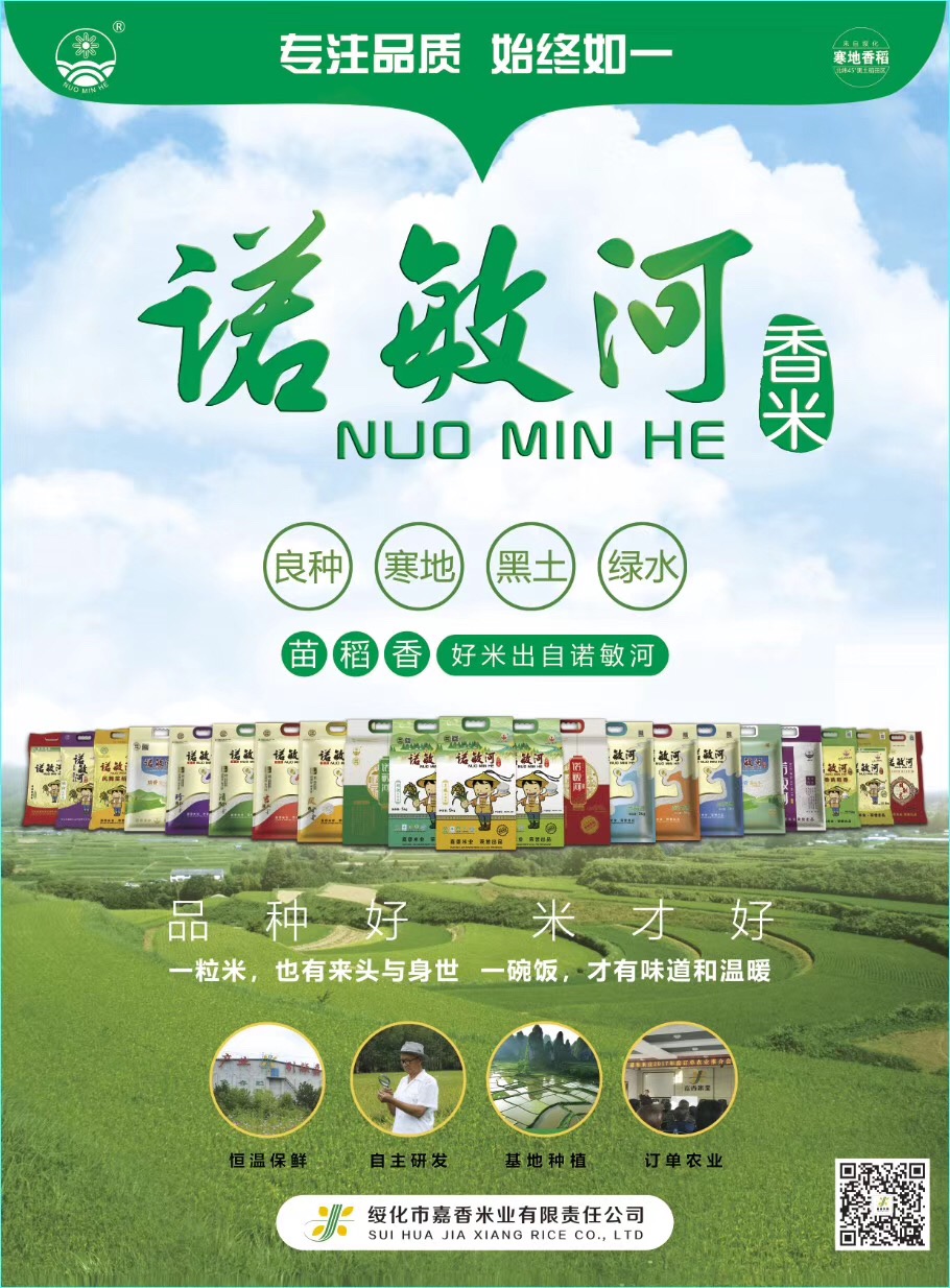 綏化市嘉香米業(yè)有限責(zé)任公司公司秉承“讓耕者富有、送食者健康、以德興企、以法律身、以誠(chéng)面世、以信待人”的經(jīng)營(yíng)理念,盯住科研成果搞開發(fā),抓住優(yōu)特品種打品牌。用訂單農(nóng)業(yè)的方式大力推廣我省第一個(gè)香稻品種“綏粳4號(hào)”及“苗稻2號(hào)”和“苗香粳1號(hào)”香稻,打出了知名的諾敏河牌苗氏香米系列品牌,在全國(guó)三十多個(gè)省、市、自治區(qū)的地級(jí)區(qū)域暢銷不衰。
