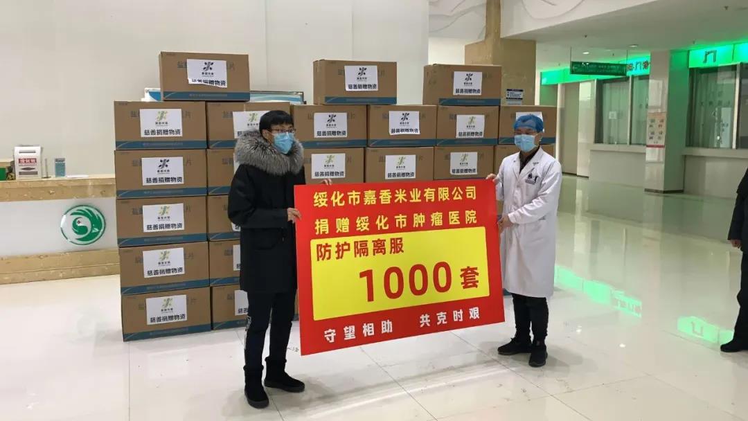 截止目前,在疫情防控期間,嘉香米業(yè)公司累計(jì)捐贈(zèng)錢物70余萬(wàn)元,其中25噸滿載著綏化人民愛(ài)心的諾敏河優(yōu)質(zhì)香米在2月11日運(yùn)抵武漢,已經(jīng)成為華中科技大學(xué)同濟(jì)醫(yī)學(xué)院附屬同濟(jì)醫(yī)院的重要保障物資。從湖北抗“疫”前線的后勤物資保障到綏化疫情防控期間的物資支持,到處能見(jiàn)到嘉香米業(yè)愛(ài)心奉獻(xiàn)的身影。用嘉香米業(yè)總經(jīng)理宋永偉的話說(shuō):抗擊疫情太艱辛了!希望通過(guò)這點(diǎn)心意,能幫到戰(zhàn)“疫”一線的醫(yī)務(wù)工作者,讓他們吃點(diǎn)兒好的。同時(shí)做好自身防護(hù),抗擊疫情同時(shí)保護(hù)好自己。你們守護(hù)患者,我們守護(hù)你們,這就是我們企業(yè)的本心。
